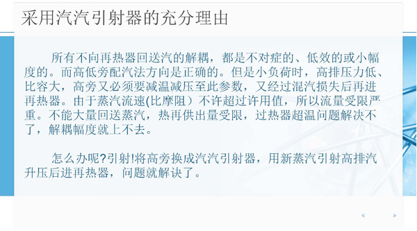 在當(dāng)今急需解決的熱電解耦問題的諸方案中,唯我引射配汽法能同時實現(xiàn)大幅度、少投資。所謂大幅度就是使發(fā)電負(fù)荷小于20%,所謂少投資就是使同效果比其他方案少90%。