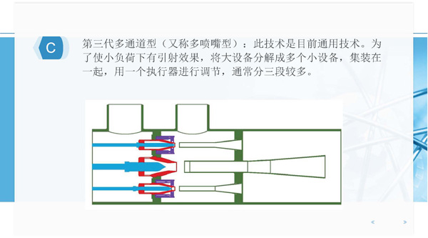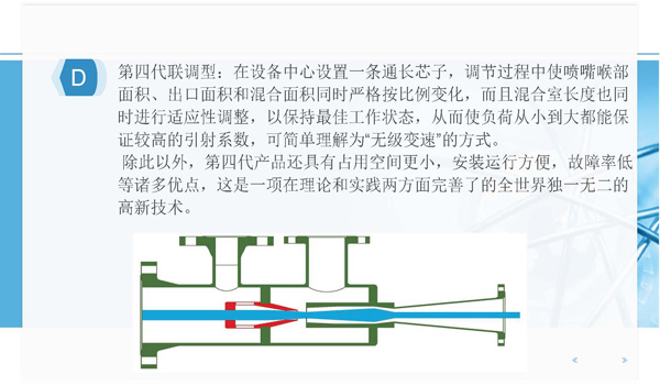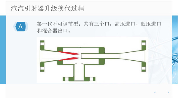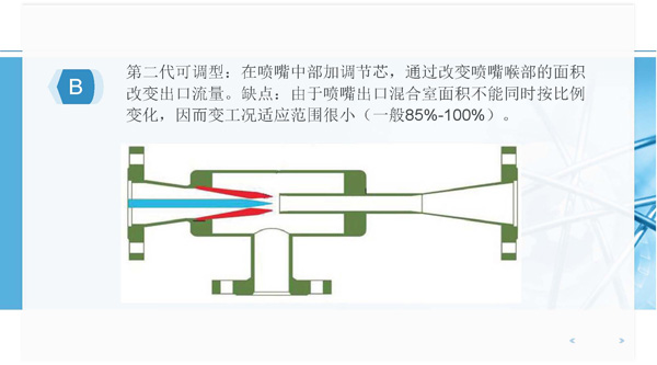 引射配汽方案所用的引射器——第四代聯(lián)調(diào)型引射器(SAJ:Synchro-adjusted Jeter),在30%以下負(fù)荷時依然具有良好的引射比,且運行穩(wěn)定,不像多通道產(chǎn)品(第三代)那樣,在增減通道數(shù)時,出現(xiàn)單通道引射空白區(qū),從而對系統(tǒng)產(chǎn)生沖擊,這在電廠機組運行中是禁止的。SAJ是我公司的專有技術(shù)和產(chǎn)品,目前國內(nèi)外沒有哪個公司能夠設(shè)計和生產(chǎn),因為其技術(shù)研發(fā)完善難度極大,知識產(chǎn)權(quán)也有保護。