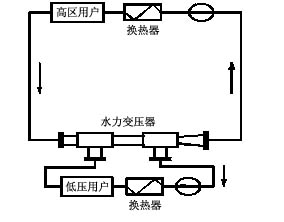 這個(gè)系統(tǒng)的工作過程是:用高區(qū)回水通過水—水噴射器引射低區(qū)回水,送至水泵一的入口,然后進(jìn)入換熱器加熱,又經(jīng)水力升壓器將水分解兩部分,高壓部分送至高區(qū)用戶又回到水水噴射器入口;低壓部分經(jīng)水泵二補(bǔ)充壓頭后送至低區(qū)用戶,而后送至水水噴射器入口。由于水力升壓器出口壓力高于換熱器出口壓力,因此水泵的揚(yáng)程可以降低。如果在水水噴射器和水力升壓器的共同作用下低區(qū)負(fù)荷的循環(huán)壓差是夠的話,那么水泵二可以不用,這樣豈不是可以節(jié)省更多的電能嗎?